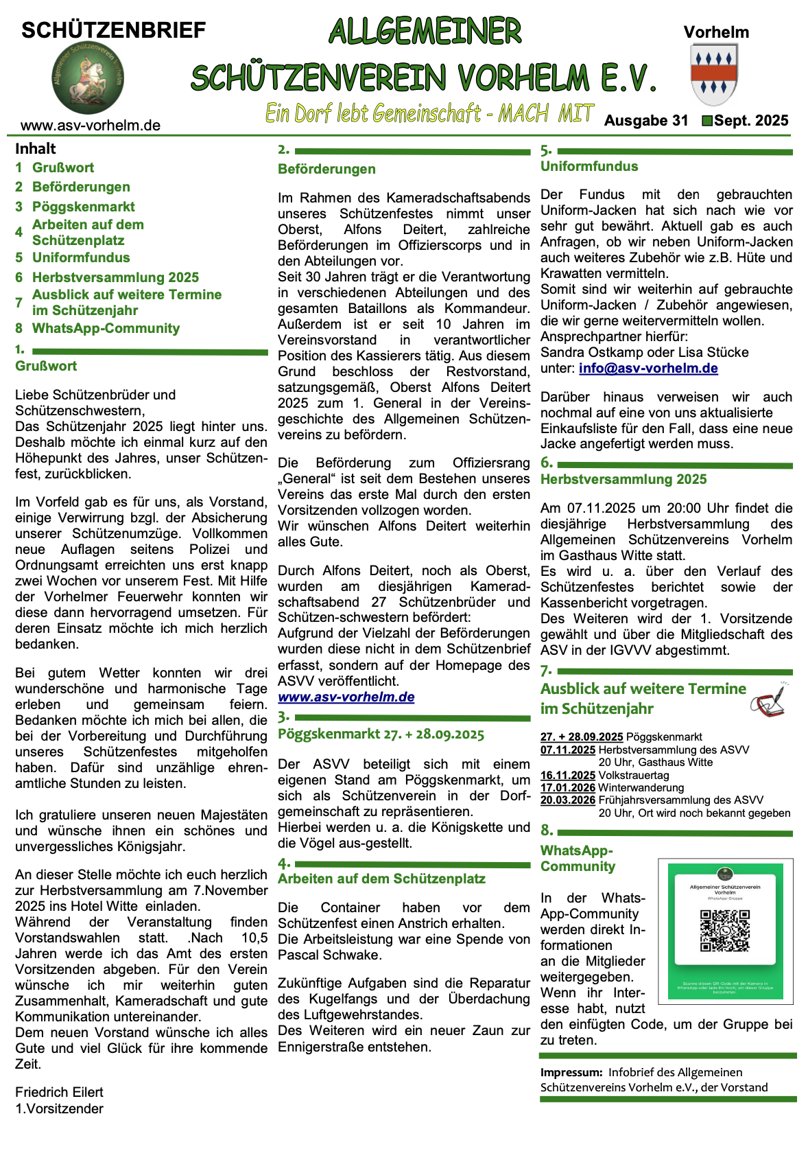 Liebe Schützenschwestern und Schützenbrüder, hier findet ihr die Beförderungen aus dem Jahr 2025. Horrido!