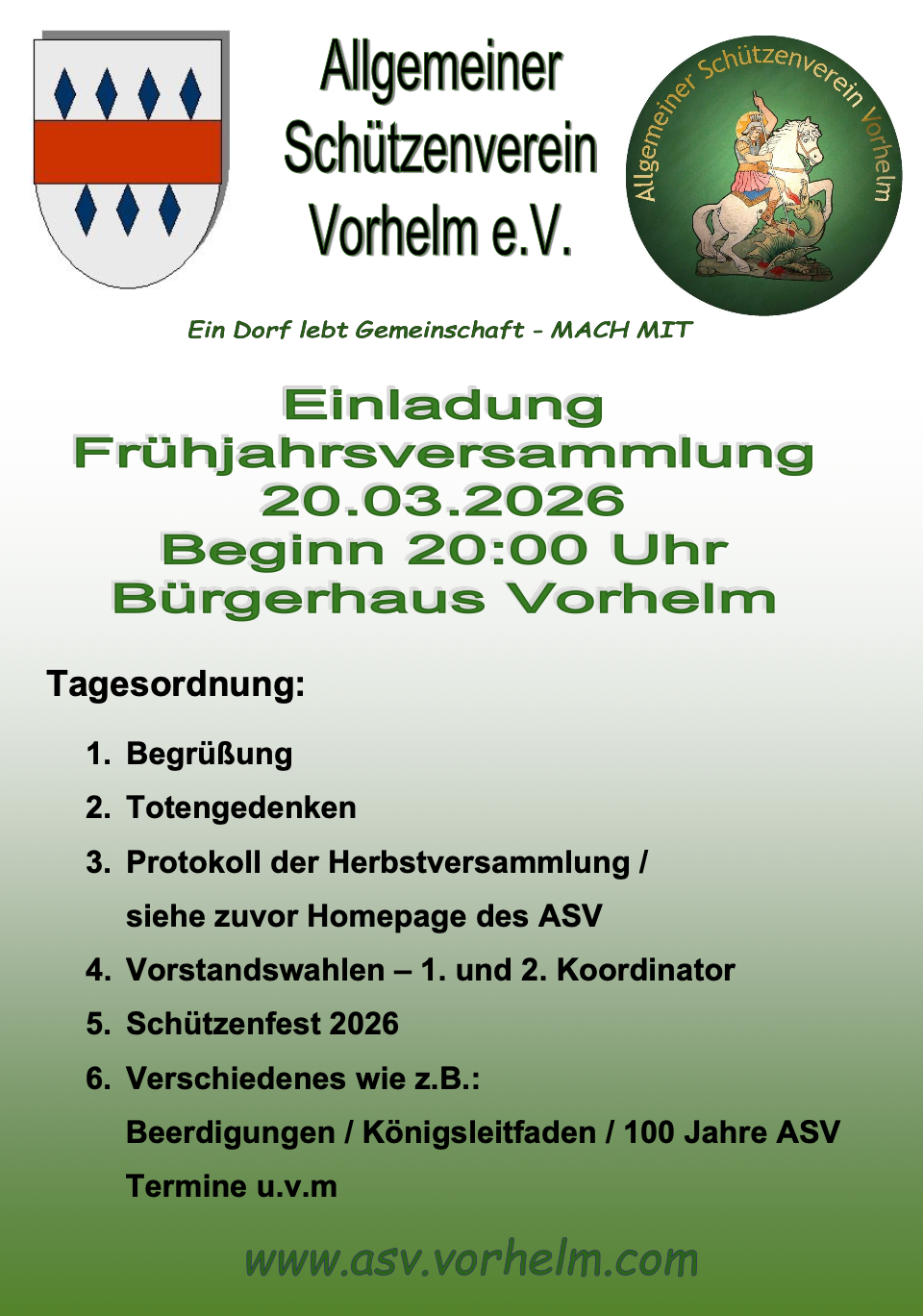 Termine im Schützenjahr 2026